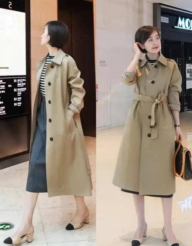 春季少不了以長風衣、長大衣為主的長外套,配條高腰過膝裙,既能為造型增添優雅感,又避免壓個子。