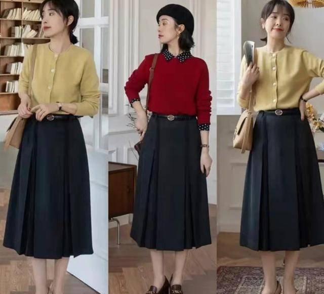 1、毛衫+過膝裙