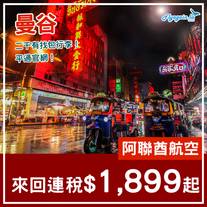來回連稅錢:HK$1,899起