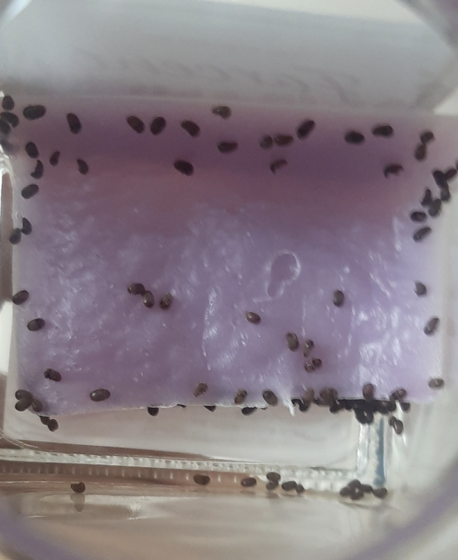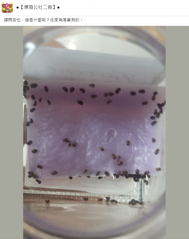 原PO在臉書社團「爆廢公社二館」PO照提問:「請問各位,這是什麼呢?住家角落會有的。」只見照片中,玻璃罐底部堆積了許多小蟲,它們的樣子看起來像一顆顆的芝麻,也有點像小豆子或火龍果籽。