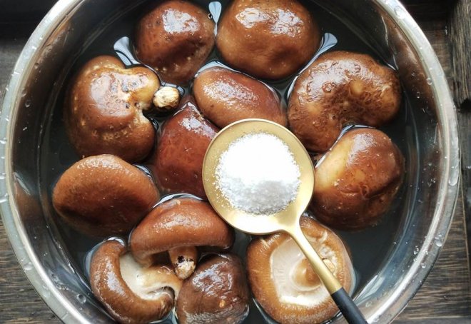 這是第二步浸泡香菇的水,食鹽能夠起到殺菌的作用,而且還能夠去掉香菇裡的土腥味,讓香菇吃起來更加鮮美。