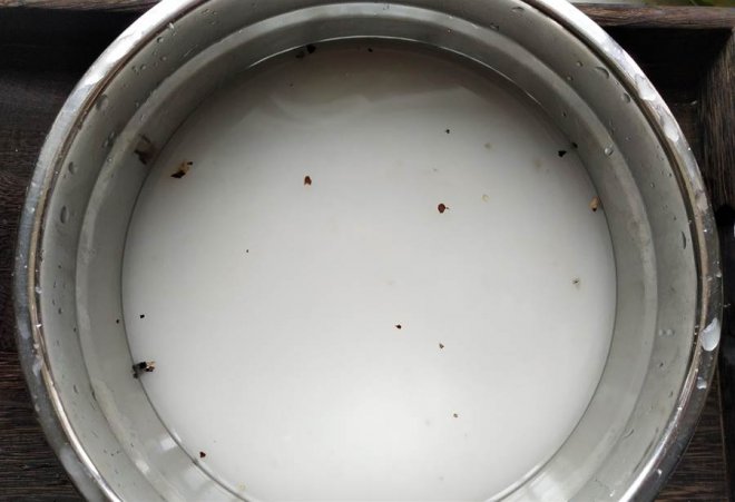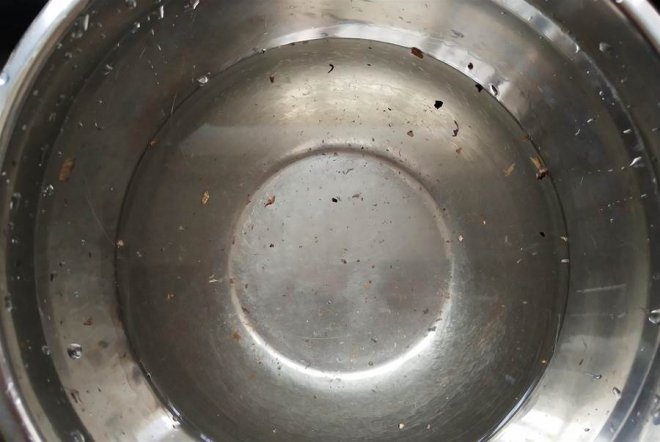 這是浸泡10分鐘後的水,是不是很髒呢,澱粉有吸附作用,這樣可以將香菇褶皺裡的灰塵被吸附在水中,能夠有效地把香菇褶皺內部的灰塵吸附掉。