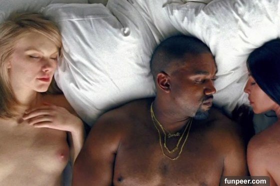 美國嘻哈歌手肯伊威斯特(Kanye West)昨天(6/24)在洛杉磯推出新歌《Famous》音樂錄影帶,他在MV中和愛妻「豐臀金」金卡達夏(Kim Kardashian)赤裸共眠,鏡頭拉開,旁邊還躺了「國民小天后」泰勒絲(Taylor Swift)、「雨傘小天后」蕾哈娜(Rihanna)、美國前總統布希(George W. Bush)、共和黨總統候選人川普(Donald Trump)、克里斯小子(Chris Brown)、「惡魔總編」安娜溫圖(Anna Wintour)和「天才老爹」比爾寇斯比(Bill Cosby)等10個名人,12P的床照引發熱議,