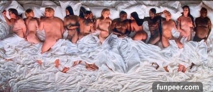 這支MV拍得就像性愛影帶,12個名人赤裸躺在一張大床上共枕而眠,肯伊昨天(6/24)在洛杉磯舉辦8千人的MV首映會,MV同步在Tidal音樂串流 平台「Tidal」獨家上線,只開放用戶下載,勢必在網路引發熱潮。美國《US》周刊指出,不清楚MV中的名人裸體是真是假,肯伊宣稱這些裸照都是真的, 外界推測應該是MV導演透過電腦合成名人頭像和其他人的裸體,《浮華世界》雜誌報導,這支MV拍了3個多月,換過4種形式,由不同的人製作,直到最後才達 到肯伊要求的效果。