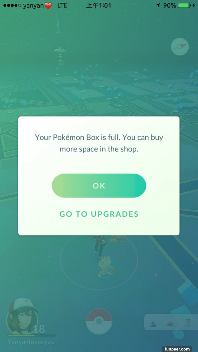 3. Pokemon的250位置滿了,又去點地圖上的野生Pokemon就會看到這個畫面... 所以要時時注意Pokemon的數量,如果滿了就趕快transfer一些\