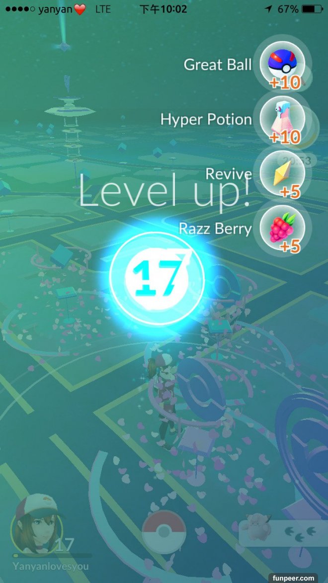 1.升到17/18等都是Great Ball +10, Hyper Potion +10, Revive +5, Razz Berry +5 (覺得現在給我Hyper Potion都好困擾畢竟我最高HP的風速狗也才94HP... 還有一堆+20/+50的Potion要消耗,完全用不到+200的Potion QQ \
