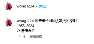 媒體人汪曼玲發文透露,李影生前有一個習慣就是每天至少要「喝6枝可樂」。