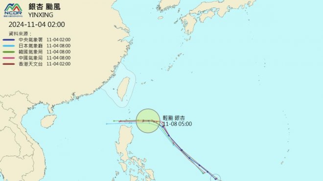 日本氣象廳指出,銀杏可能在後天轉北西,往菲律賓北部進發,在本月8、9日時,暴風圈可能會掃過台灣南部,預計在半徑200公里內都會有影響。包含韓國、中國大陸的官方預測也顯示,銀杏將於3天後轉向西,穿越呂宋島、進入南海,但目前路徑仍可能變動。
