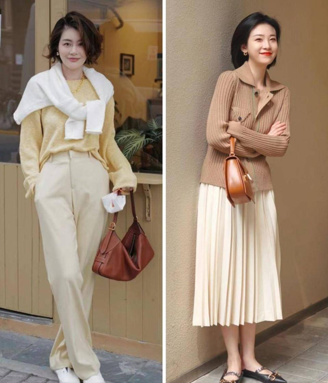 同樣的,你還可以通過層次感強的流行色彩,打造出具有視覺衝擊力的高級感。例如,橄欖綠直筒褲配以淺橙色針織衫,像極了春日裡的柑橘明亮、鮮美,為你的造型注入了活力。