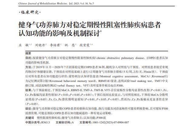 [1]庄敏. 健身氣功養肺方對穩定期慢性阻塞性肺疾病患者認知功能的影響及機制探討 ,中國康復醫學雜誌, 2023-07-07.